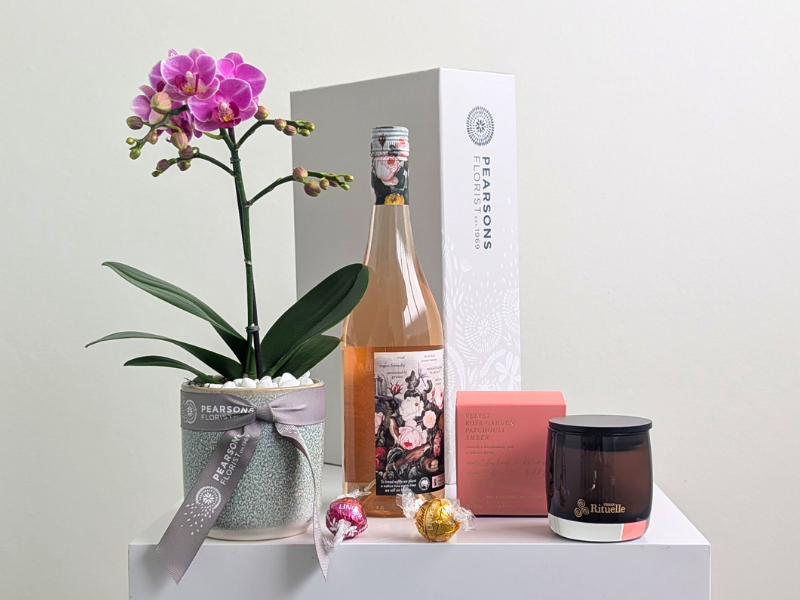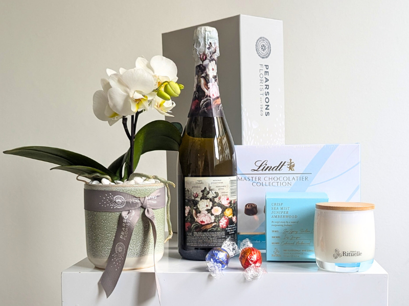 Phalaenopsis orchids are the ideal centerpiece of a luxurious gift hamper. At Pearsons we pair them with items that complement their elegance for an unforgettable present.