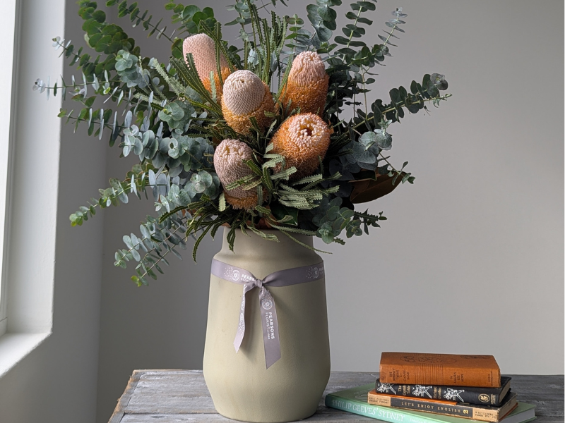 Australian Natives Proteas, banksias and eucalyptus bring texture, shape and staying power. The look is stylish, a little unexpected and very Melbourne.